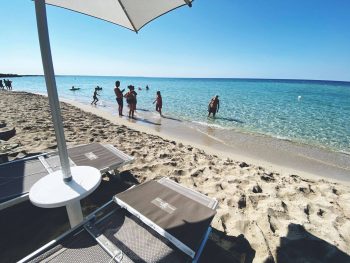 La struttura dista circa 400 metri dalla spiaggia libera, raggiungibile a piedi. Nel raggio di 2 km dalla struttura ci sono diversi lidi tra i quali Punta Prosciutto e Padula Fede, raggiungibili e prenotabili in autonomia dagli ospiti